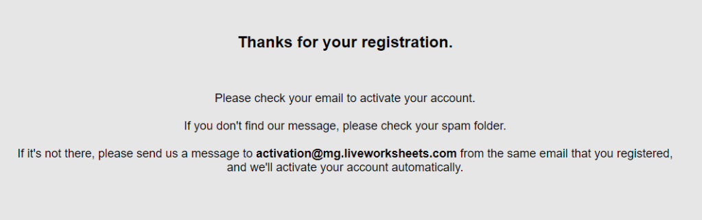 Như vậy, chúng ta đã hoàn tất việc đăng ký tài khoản cho giáo viên, nếu thầy/cô đang tìm kiếm một ý tưởng để sử dụng Liveworksheet.com trong lớp học trực tuyến thì có thể tham khảo ở bài viết Một ý tưởng sử dụng Liveworksheet.com khi không có sách giáo khoa.