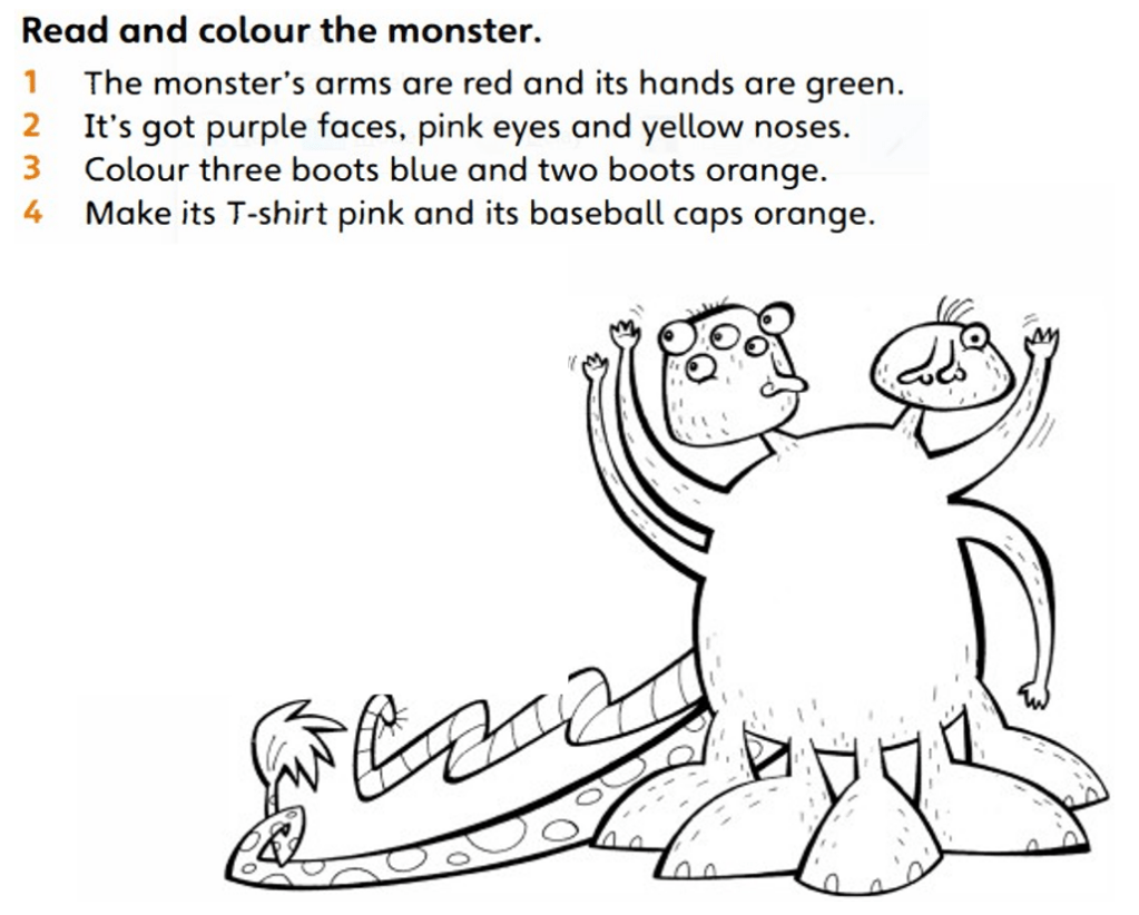 Though listen-and-do tasks can be more commonly seen, it is also feasible to have reading tasks in this way. Below is an example I take from the Fun for Starters book when students need to read the sentences and colour the monster.