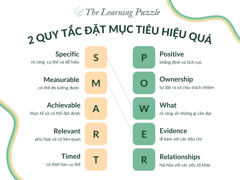 TLP xin phép chia sẻ với các bạn hai quy tắc đặt mục tiêu SMART và POWER. Hai quy tắc này đã được Thạc sĩ Như Ngọc chia sẻ và thảo luận cùng các bạn tham gia sự kiện Learner Training Session: Goal Setting for Goal Getting. Đây những công cụ hữu ích để giúp các bạn xác định và đạt được mục tiêu một cách khoa học và hiệu quả.